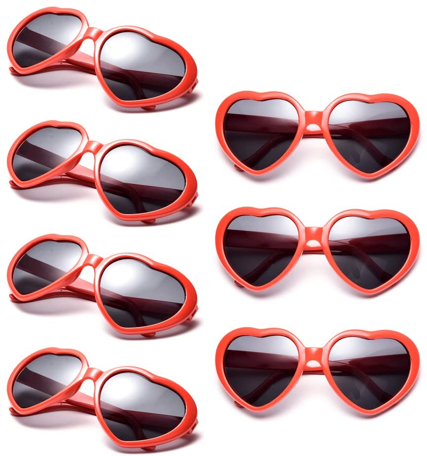 7 Pack Red Kids Toddler Heart Shape Sunglasses Party Favor Supplies for Girls Boys