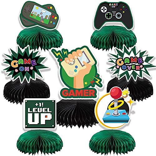 7 Pcs Video Game Party Honeycomb Centerpieces for Table Decorations, Video Game Honeycomb Centerpieces, 3D Video Game Table Decorations for Kids Video Game Theme Birthday/Baby Shower Party Supplies