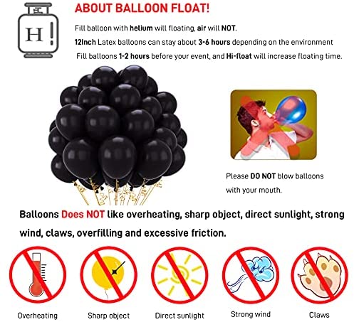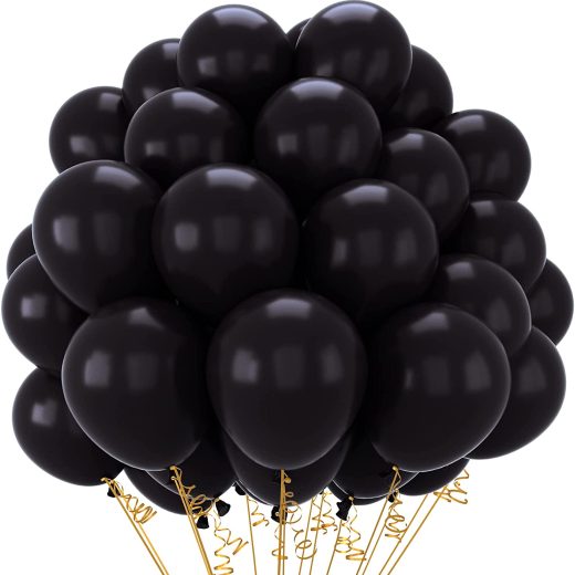 Black Party Decorations70pcs quality black balloons with 2pcs gold ribbon.You can easily assemble them into a black balloon garland, or match them with other balloons. Quality Party BalloonsOur balloons are made of 100% latex, thick, strong and pretty in color. They can be easily inflated, and can hold air or helium well. Easy To AssembleThese premium quality black balloons are easily inflated, making it easier and more fun to make balloon garlands. Applicable to multi-scenariosThe black balloon garland will made for an amazing display on your party. It is suitable for graduation decorations, baby shower decorations, birthday decor, gold and black party decorations, black and white party decorations, red and black party decorations, Halloween decorations, etc. Satisfaction Guarantee If you have any dissatisfaction with our products or services, please feel free to contact us, and we will serve you wholeheartedly until you are satisfied.