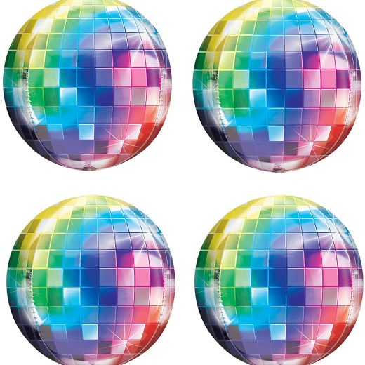 70s Disco Laser Ball Balloons Hangable 4Pcs 22in 4D Large Sphere Aluminum Foil Balloon Mirror Metallic Balloon Birthday Party Wedding Baby Shower Decor 70s Color
