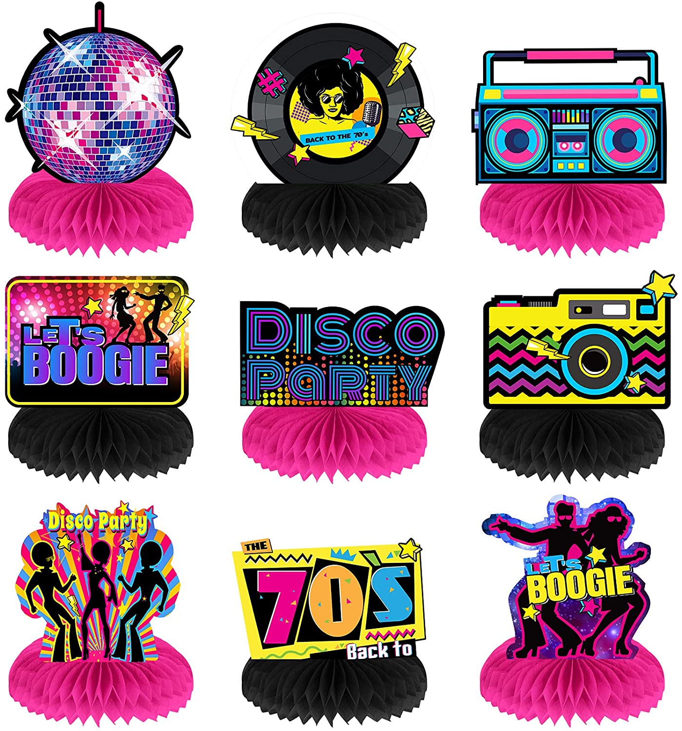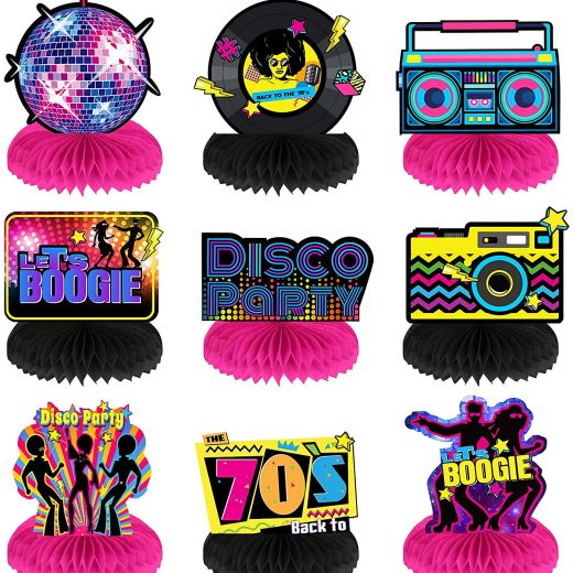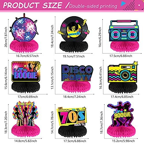 Package contents: you will get 9 non-repetitive 70s disco party honeycomb centerpieces and 18 pieces of honeycomb balls; The double sided design is…