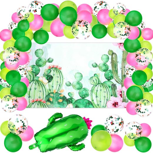 72 Pieces Cactus Party Decorations Set, Includes Floral Cactus Backdrop and Foil Balloon Confetti Balloons for Garland Summer Fiesta Jungle Baby Shower Wedding Office Birthday Party Supplies
