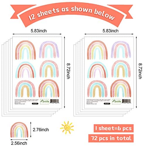 72 Pieces Colorful Boho Rainbow Wall Decals Stick and Peel Removable Vinyl Waterproof Rainbow Wall Stickers for Girls Kids Nursery Bedroom Decorations (Attractive Style)