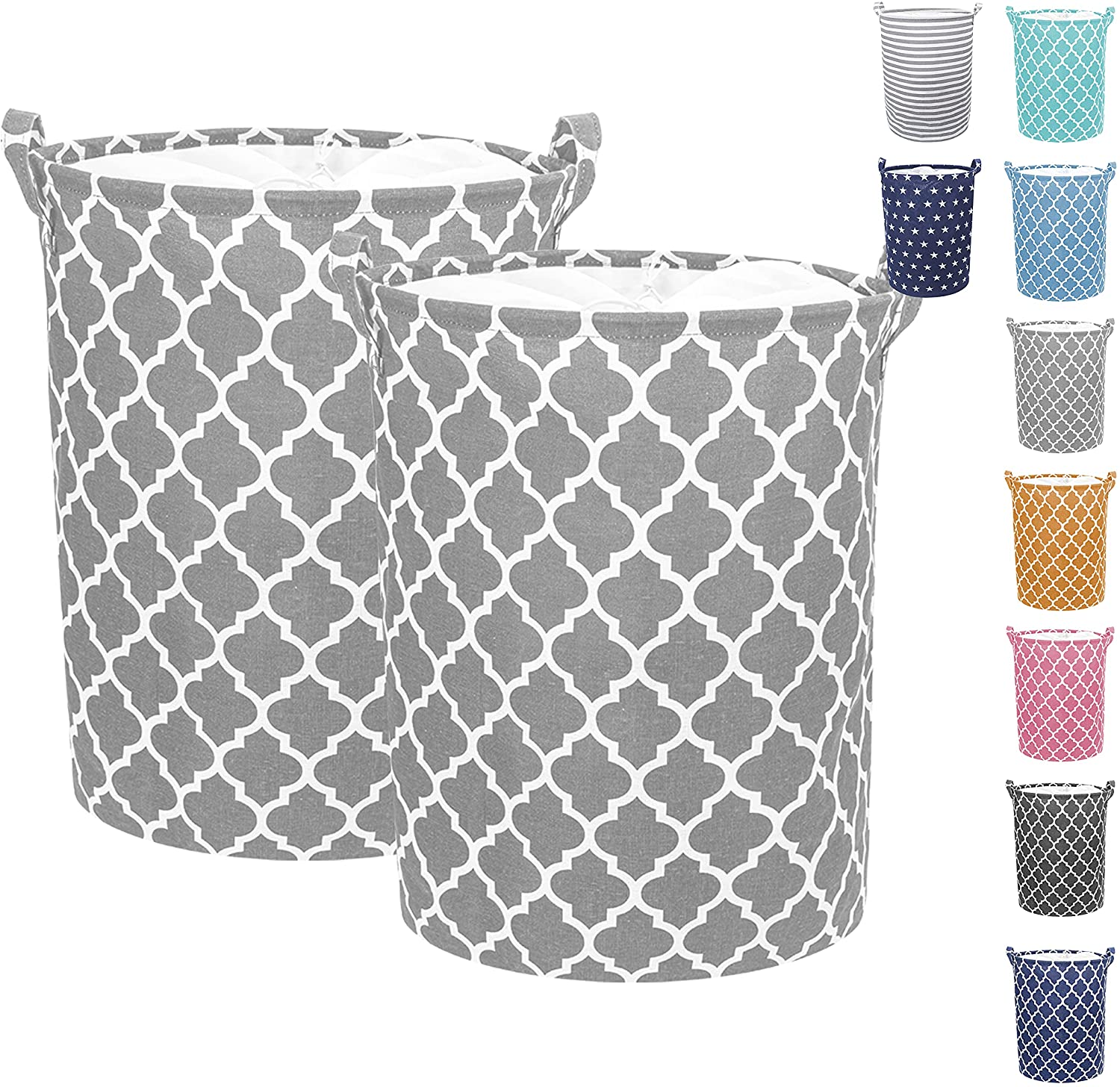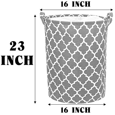 72L 23-inch Tall (2 Pack) Extra Large Laundry Basket Storage Hamper Drawstring Waterproof Round Linen Collapsible Storage Basket for Toy Organizer, Nursery Hamper, Bathroom, Grey