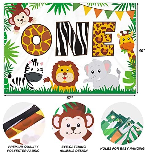 Safari Animals One Year Old Backdrop Banner – Perfect photography backdground props for wild animals theme birthday party. Take fun and shareable p…