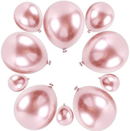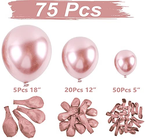75 Pcs Metallic Rose Gold Latex Balloons, 18/12/5 Inch Chrome Balloons Various Sizes for Grils Women Rose Gold Birthday Baby Bridal Shower Wedding Decorations