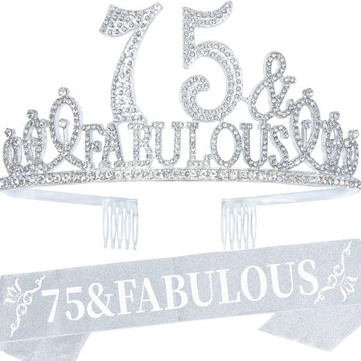 75th Birthday Gifts for Women, 75th Birthday Crown and Sash for Women, 75th Birthday Decorations for Women, 75th Birthday Party Favors, 75th Birthday Tiaras for Women, 75 Birthday Party for Women