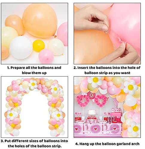 7ilaewen 153Pcs Daisy Groovy Balloon Arch Garland Kit Macaron Pink White Yellow Orange Boho Balloon Garland, Daisy Flower Latex Helium Balloons Party Decorations for Daisy Theme Birthday Party Wedding