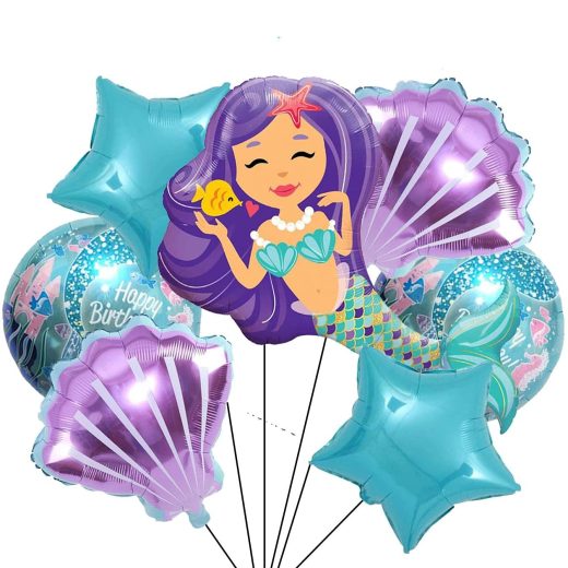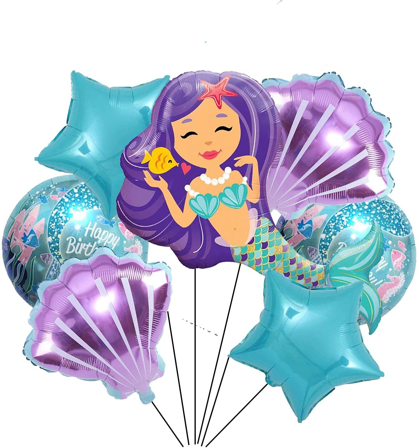 7PCS Mermaid Mylar Balloon Mermaid Balloons Birthday Party Supplies for Little Mermaid Theme Birthday Party Decorations for Girls Baby Shower