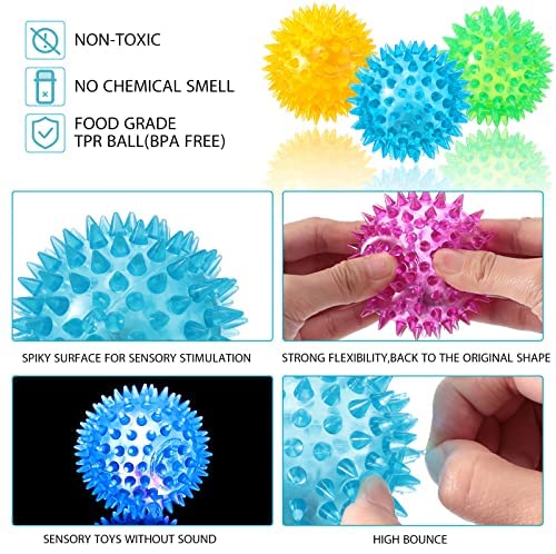 8 Pack 2.55 Inch Light up Spike Rubber Ball Light up Led Spiky Ball Strobe Flashing Lights Sensory Toy Builder Blinking Sensory Bouncy Stress Ball Therapy Balls