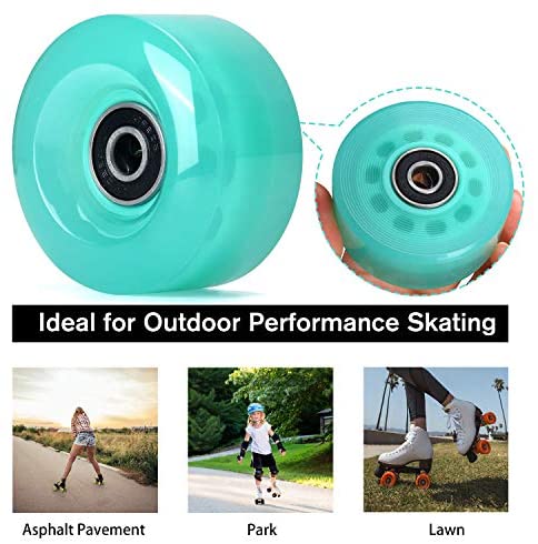 8 Pack 58mm x 32mm, 82A Outdoor/Indoor Quad Roller Skate Wheels with ABEC-9 Bearings, Durable Wear-Resistant PU Wheels Replacements Double-Row Roller Skating Accessories