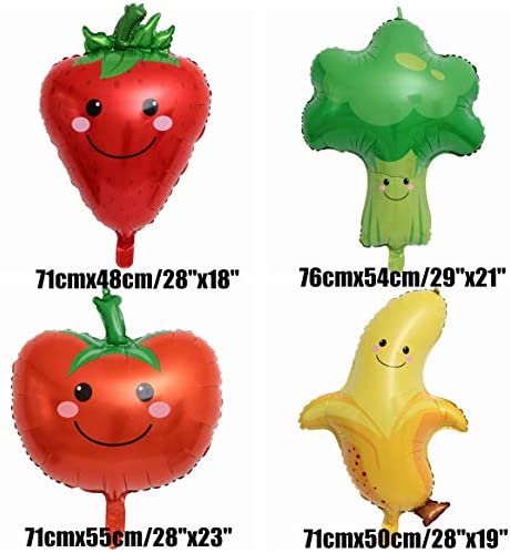 8 Pack Assorted Fruit Vegetable Shaped Foil Balloons Jumbo Apple Banana Orange Strawberry Grape Globos Corn Carrots Broccoli Mylar Balloons for Birthday Party Favours