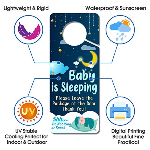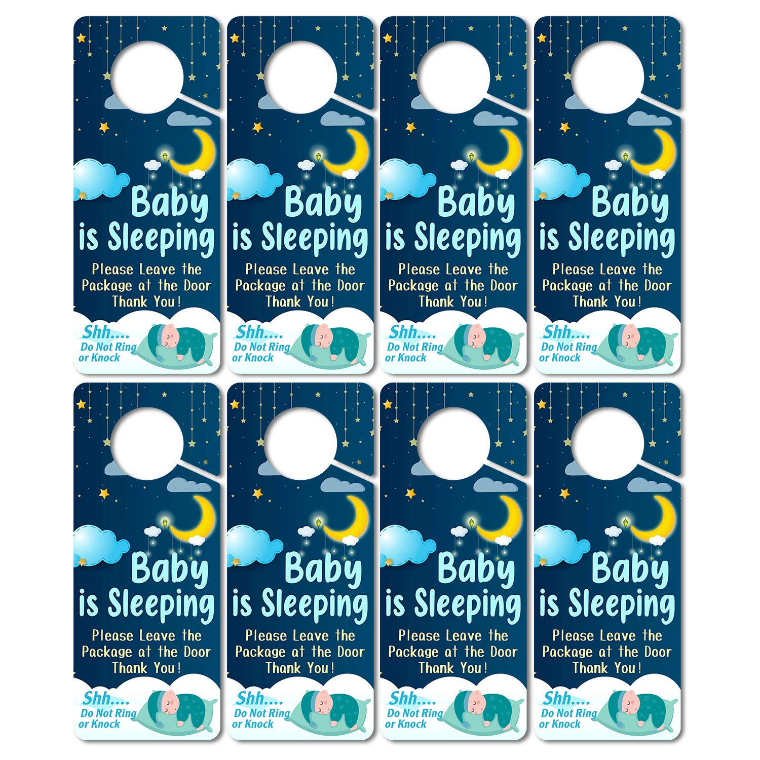(8 Pack) Baby Sleeping Sign, Do Not Knock or Ring, Door Knob Hanger Sign,3.5 x 8.7 Inch Double Sided Premium Quality PVC Plastic, UV Printed, Long Lasting, Weatherproof