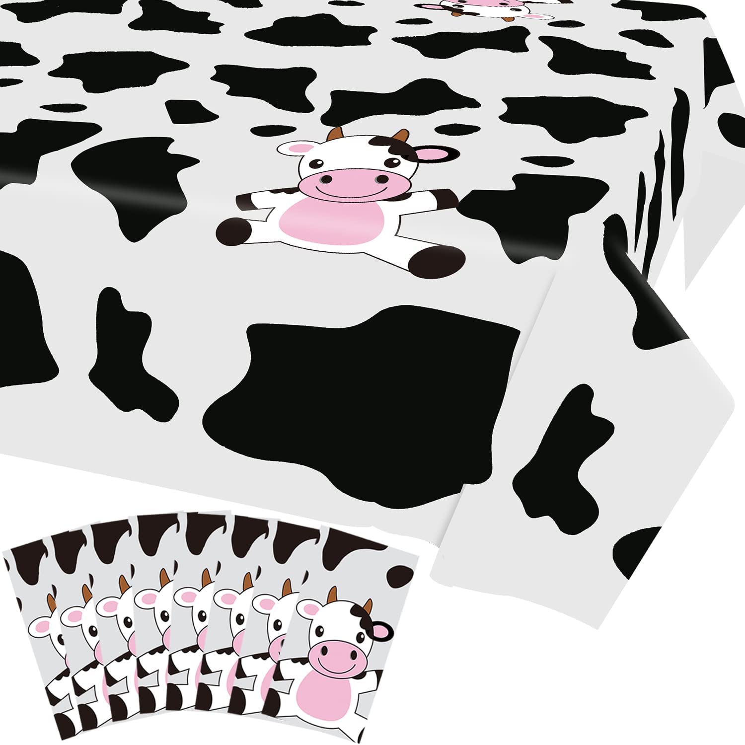 8 Pcs Cow Print Plastic Tablecloth, Farm Animal Themed Parties Tablecovers for Cow Theme Birthday Party Supplies, Black and White (2)