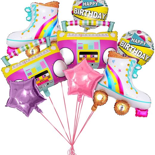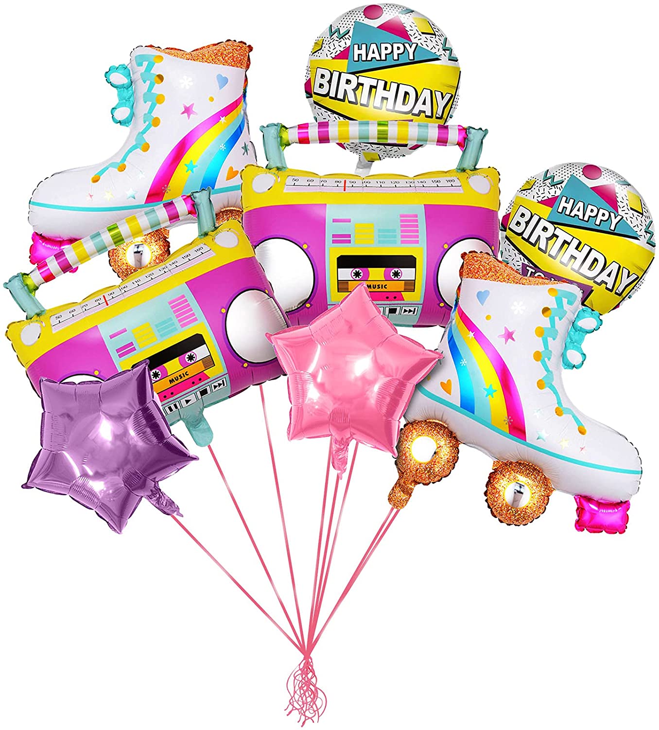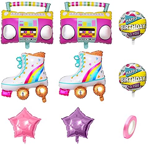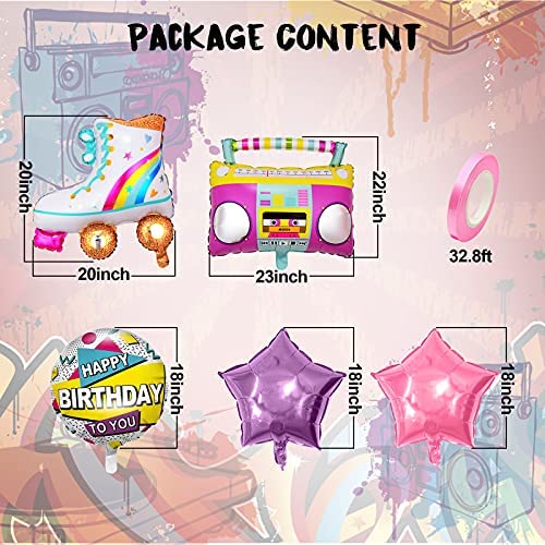 8 PCS Rainbow Roller Skate Balloons Inflatable Radio Boombox Props for 80s 90s Party Decorations Retro Theme Hip Hop Birthday Party Back to the 80S 90S decorations