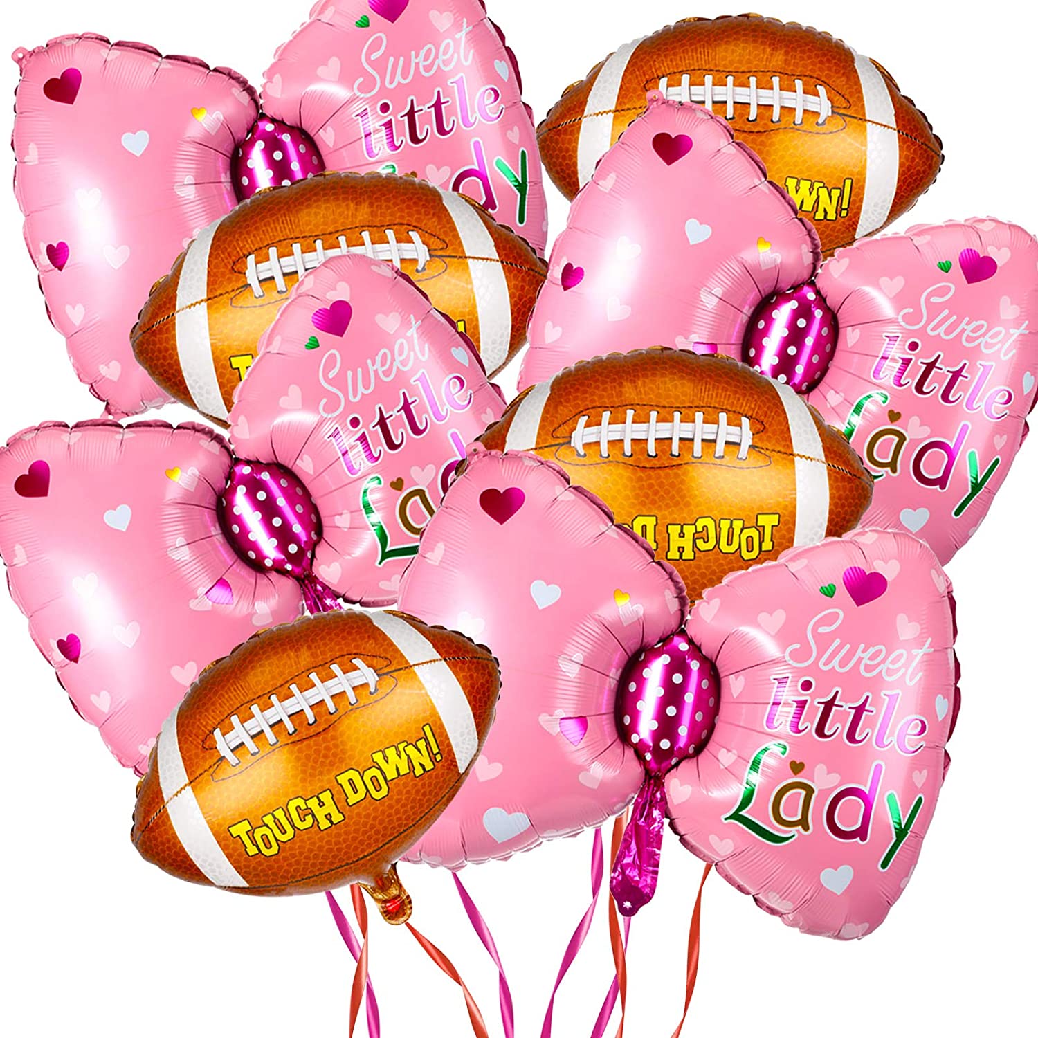 8 Piece Pink Bow Balloons Jumbo Bow Foil Pink Balloons and Football Balloons Foil Mylar Balloon Set for Gender Reveal Party Birthday Baby Shower