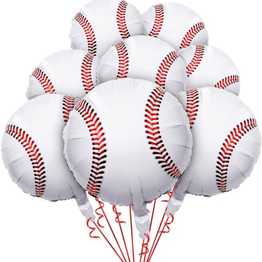 Creative design: baseball balloons can be hung with the help of holes, round shape together with the print on the balloons make balloons appearance close to the baseball, all deliver a realistic ball feeling to people Quality material: hanging baseball balloons are made of foil mylar, which are safe to use, the material helps to create a smooth surface for balloons, lightweight to hang and carry Easy to use: you can fill the foil baseball balloon with helium to make the balloon fly or fill it with air (only the former can make it fly); The balloons are self-sealing, they will seal automatically after inflation, there is no need for additional operation, easy and simple Decorative function: sport themed baseball balloons are creative decors for baseball party, birthday party, team celebration or other relevant themed party, they can also function as banner ornaments, backdrops, photo props, table decors to make your party more attractive Sport party supplies: the package includes 8 pieces 18 inches foil baseball balloons, each balloon contains a hole for you to tie the rope (rope is not included), making it easily hang on the places you want, sufficient amount for party decoration