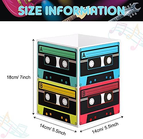 Features:Delicate design:Cassette tape bucket decorations are full of retro elements, and the bright patterns will make these radio decorations look more colorful and pleasing. They are wonderful table decorations for 80s or 90s theme parties, so you can invite your friends to join this party and enjoy these eye-catching decorations.Nice decoration:These cassette tape decors are suitable for 90s theme birthday party decorations and 80s party supplies, which can brighten up your party, and will be loved by the guests.Specifications:Material: paperSize: approx. 5.5 x 7 inchColor: as pictures shownPackage includes:8 x Cassette tape bucket centerpiecesNotes:Please allow slight size errors due to manual measurement.Please allow slight color difference due to different monitor.