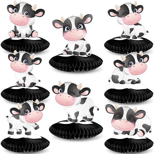 Packaging includes: you will get 8 pieces of cow party honeycomb centerpieces, enough quantity and styles to help you create a fun party, making you immersed and pleasant in the party atmosphere Quality material: the cow print centerpiece is made of quality card paper, which is safe and stable to use for a long time; In addition, the cow theme table topper with double-sided printed patterns is odorless, not easy to fade and break, so that you can use it with confidence Easy to assemble: you can complete the assembly in just a few seconds according to the instructions of the pictures, fit for your kids party whether a cowboy theme party, farm theme party or birthday party Suitable occasions: the cow themed birthday party supplies are ideal for farm party decorations, birthday party, baby shower and farmer summer events which can make your party more charming and eye-catching Add an enjoyable atmosphere: the cow party supplies are suitable for birthday parties, little ones birthday parties, cow themed baby shower or farm animal themed celebrations, adding an interesting and adorable party atmosphere