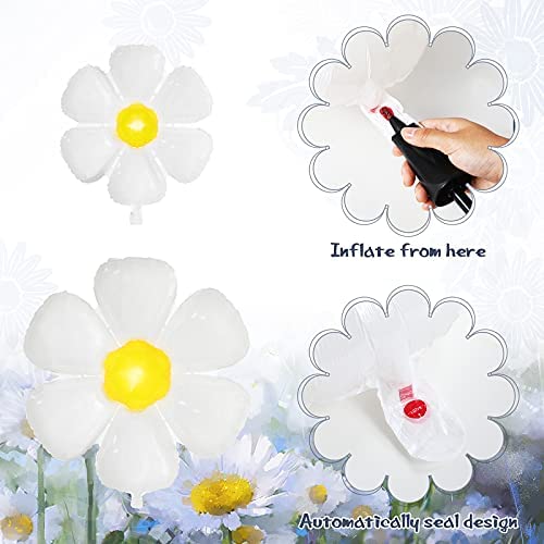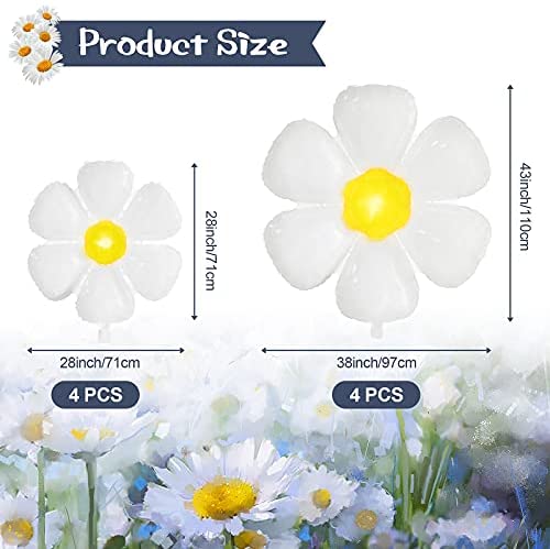8 Pieces Daisy Balloons Large White Daisy Foil Mylar Balloons White Flower Party Decorations Balloons for Daisy Theme Girls Birthday Party Wedding Baby Shower Decor (28 x 28 Inch, 43.3 x 38 Inch)