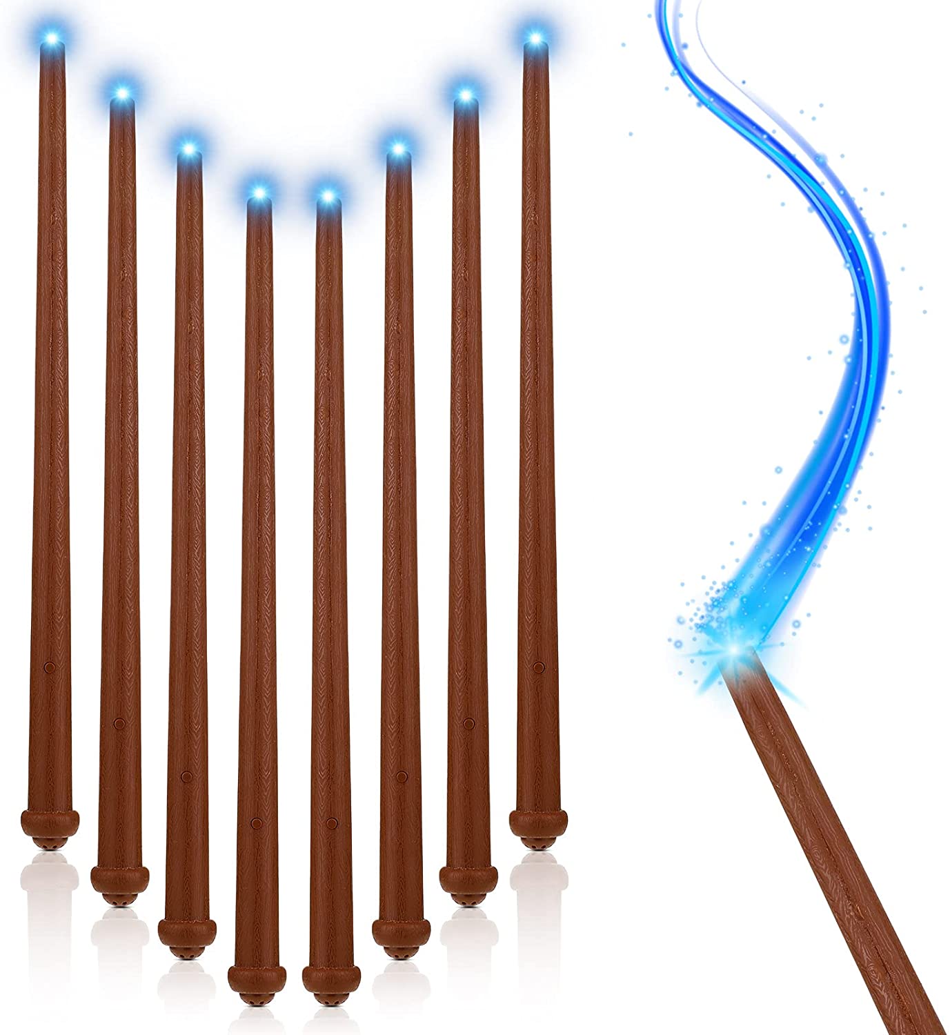 8 Pieces Light up Wand Magic Light and Sound Toy Wizard Wands, Illuminating Wand, Party Costume Accessory for Halloween Cosplay Masquerade (Brown)