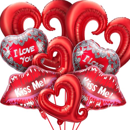 8 Pieces Valentine Day Balloons Set Heart Shape Balloons Lips Foil Balloons Love Foil Balloons Love You Kiss Me Mylar Balloons for Valentines Day Propose, Marriage Engagement, Romantic Party