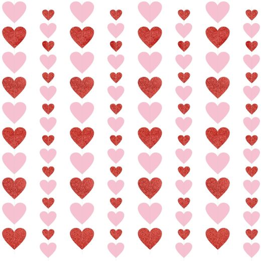 What You Will Get8 packs red pink heart string garland, each garland contains 10 hearts, total 80pcs heart,adding a little sparkle to your Valentines Day party decor. No Assembly Required: 80 pcs heart garland decorations for valentines are very nice and enough quantity for your use. Our heart garland have already assembled, save your time and super easy to use. Premium DesignOur valentine heart garland design with unique glitter heart design. Red Heart Garlands total length is about 61.2 ft(each Garland string is 10.2ft) and the each red heart is 3.1in (W) × 2.6in(H), Hang the lovely red heart hanging string garlands on your party for the perfect decorations.makes you valentine day full of romantic atmosphere. High Quality MaterialsOur felt heart garland made of glitter and high quality thick paper. Sufficient hardness to maintain good plasticity, environmentally friendly materials so that the product will not pollute the environment after use. Customer ServiceIf you are not satisfied with the heart garland decorations for valentines or have any quality problems, you can enjoy an unconditional 100% return and exchange. Buy with confidence! Our decorations offer a 61-day fast money-back guarantee. If you have any questions, please contact us and we will do our best to satisfy you.