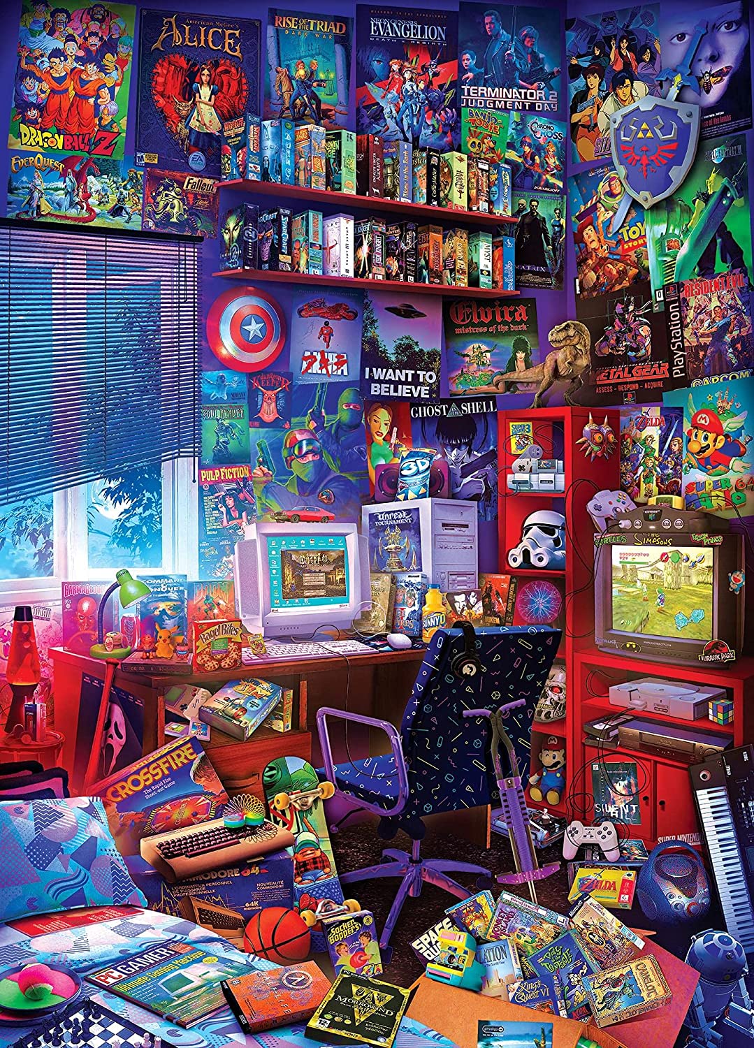 80s Game Room Pop Culture 1000 Piece Jigsaw Puzzle by Rachid Lotf | Interactive Brain Teaser, Educational Toys & Games for Kids and Adults | 28 x 20 Inches