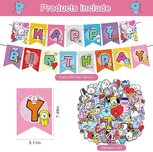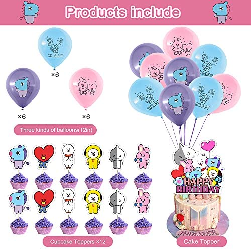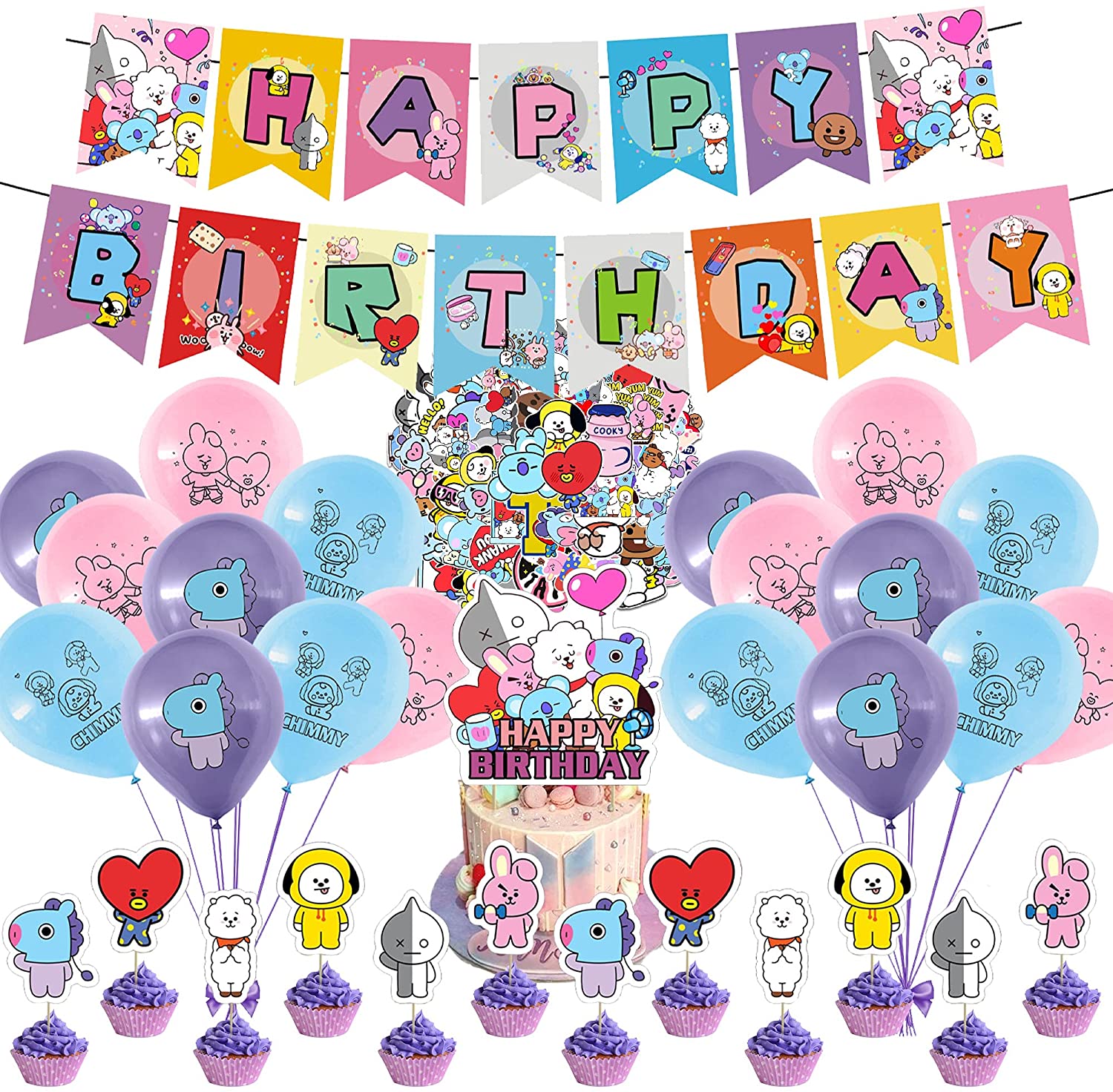82 Pcs BTS Theme Birthday Party Decorations,Party Supply Set for Kids with 1 Happy Birthday Banner Garland , 13 Cupcake Toppers,50 Stickers ,18 Bal…