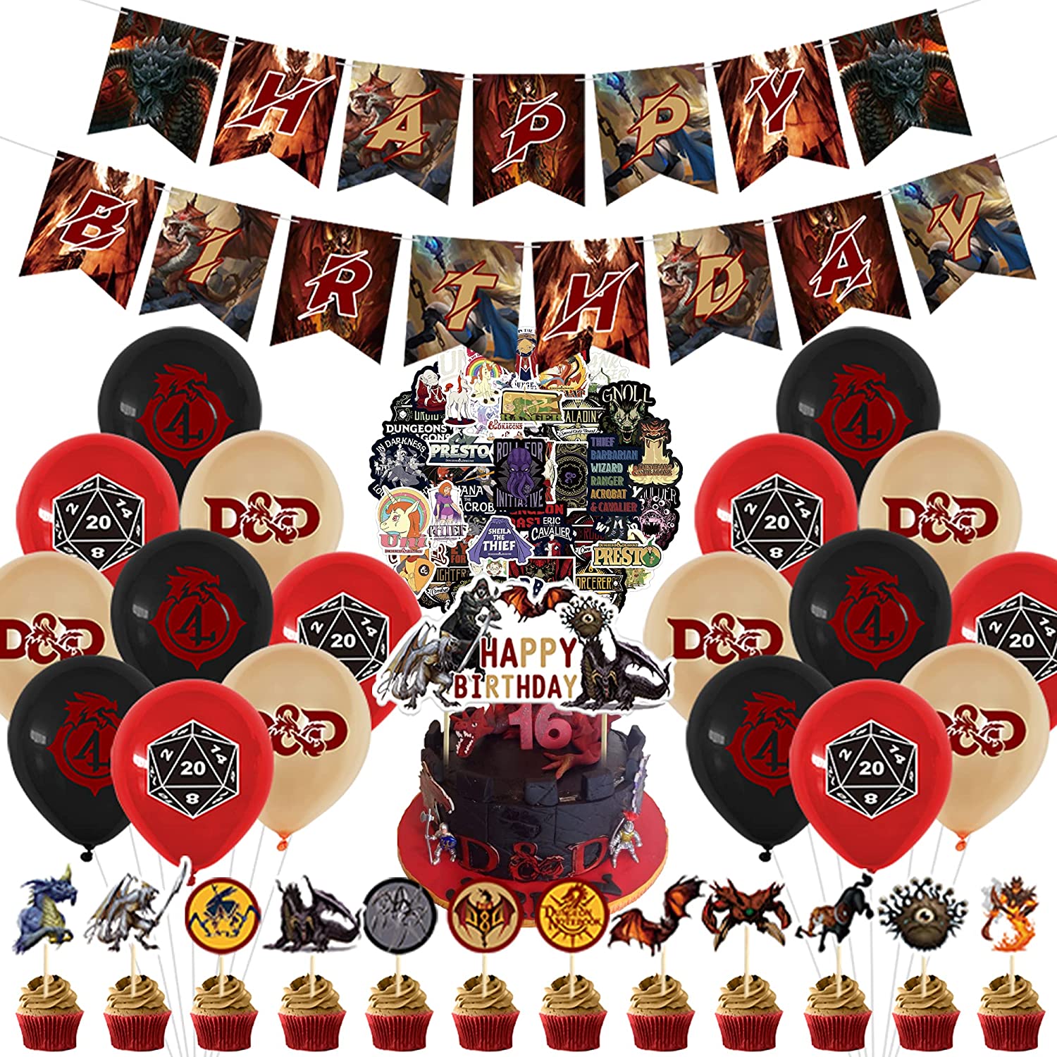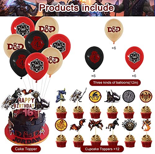 82 Pcs Dungeons and Dragons Birthday Party Supplies, Classic Game Boys and girls Party Decorations with Happy Birthday Banner Cake Topper Cupcake Toppers Balloons Stickers