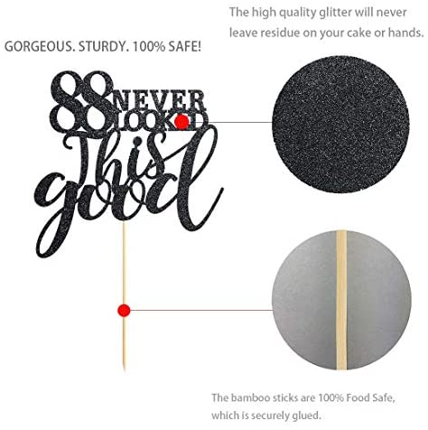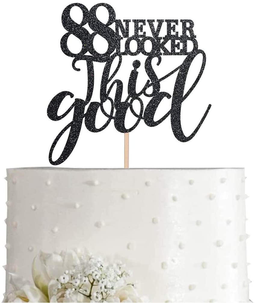 88 Black Glitter Happy 88th Birthday Cake Topper, Cheers to 88 Years Party Cake Topper Decorations, Supplies