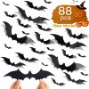 88 Pcs DIY 3D Bats Halloween Decorations, 4 Different Sizes PVC Bat Stickers for Home Decor / Wall Decor / Indoor Party Decorations, with Double-Sided Adhesive Included