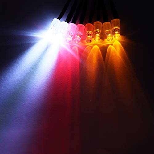 8Leds LED Light Headlights Lighting Taillight Kit Accessories Lights for Traxxas HSP RC4WD Tamiya Redcat Axial SCX10 RC Car Crawler Truck Tank,5mm(2 White + 2 Red+ 4 Orange)
