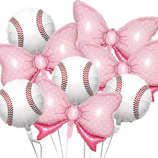 8Pack Gender Reveal Party Balloons, 4Pcs Pink Bow Foil Balloons 4Pcs Foil Baseball Balloons for Baseball or Bows Gender Reveal Party Decorations Supplies