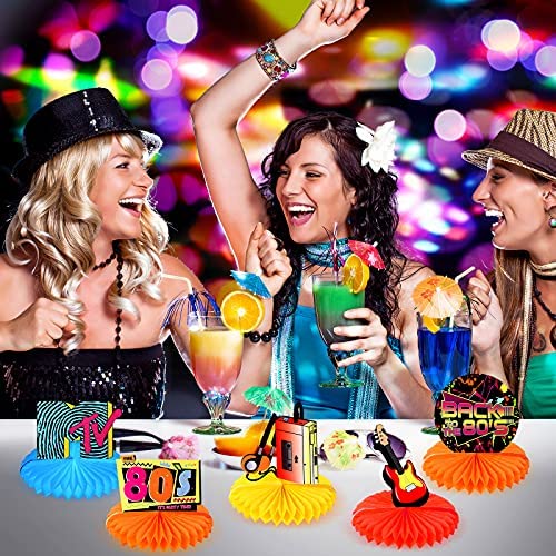8Pcs 80s Party Decorations 1980s Honeycomb Centerpieces Table Toppers 80s Retro Table Decor Back To The 80s Hip Hop Party Decorations For 80u2019s Themed Nostalgic Party Supplies 1980s Party Favors