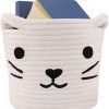 8X7 Small Baby Hamper White Cotton Rope Basket | LONTAN Washable Baby Nursery Hamper Cute Cat Design Baby Gift Basket Collapsible Organizer for Snacks, Pen