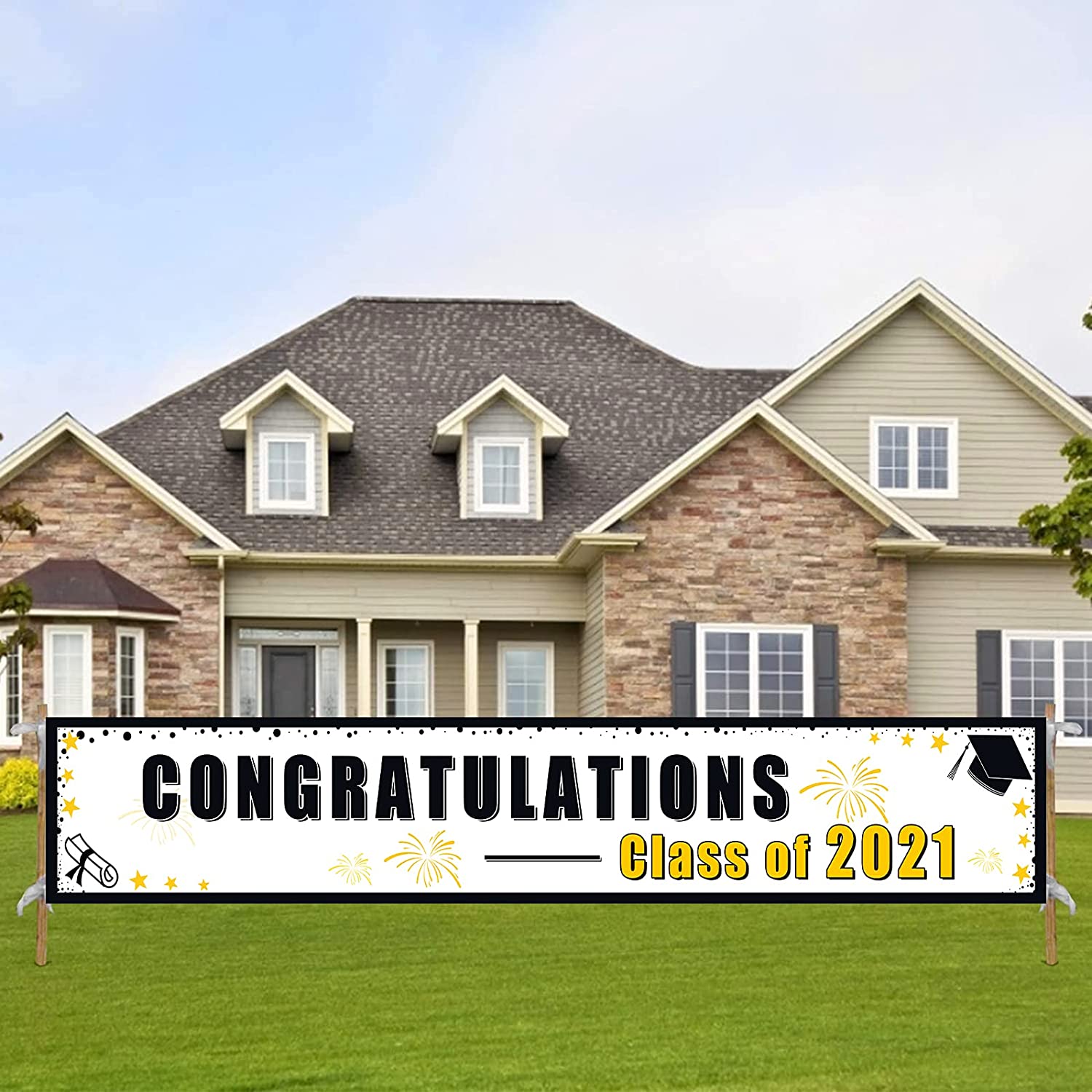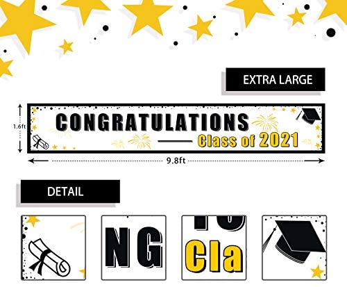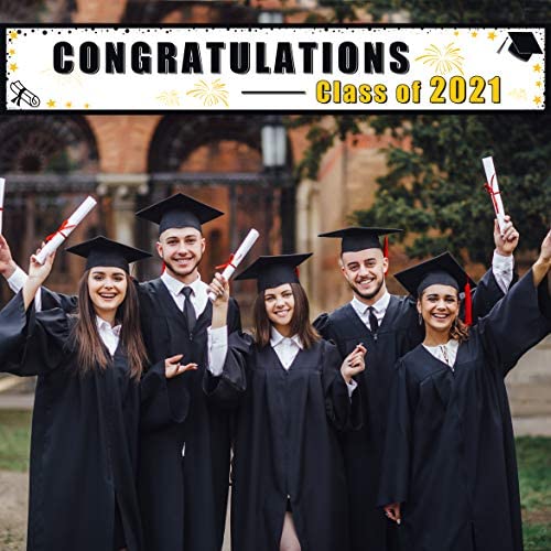9.8 1.6 Feet Graduation Banner, Congratulations Class of 2021 Sign, Congrats Grad Party Decorations Supplies White & Gold