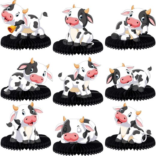9 pieces cow decorations farm animals themed centerpieces for tables decorations 3D cow theme honeycomb table topper. Features: Special Design 3D h…