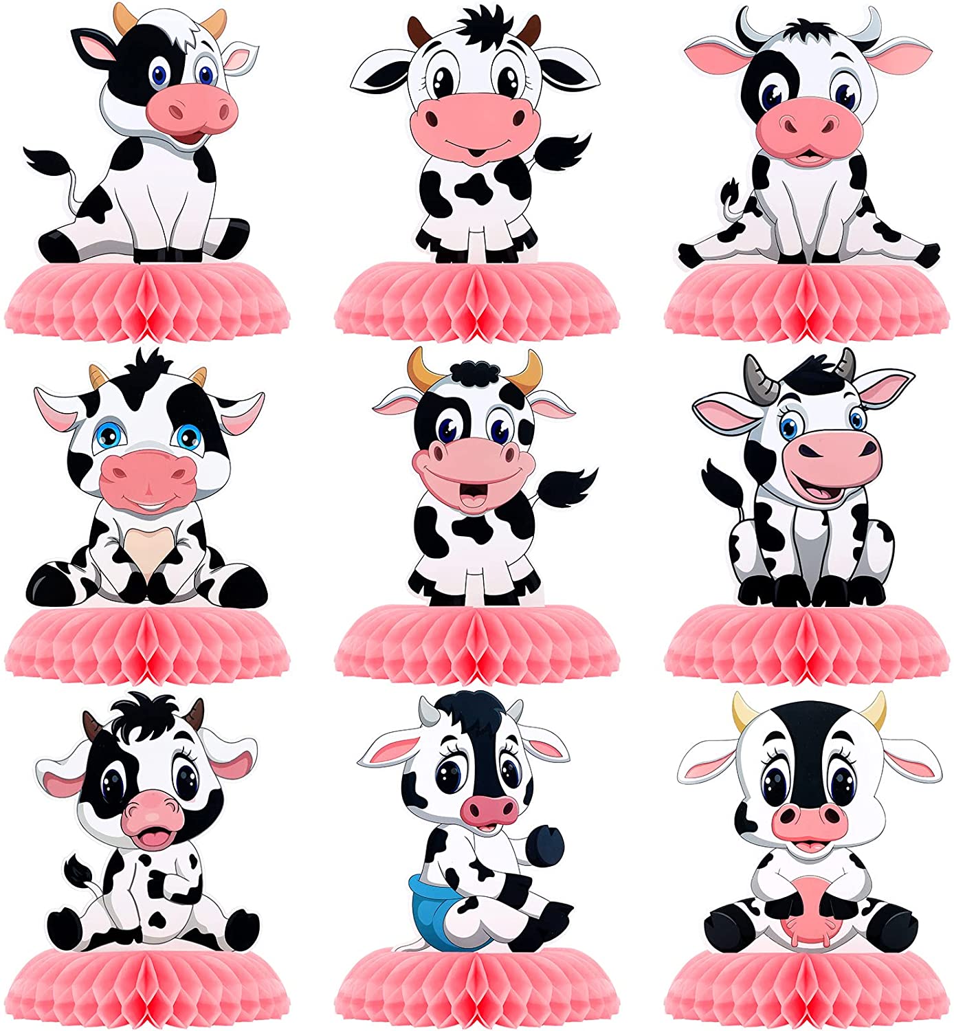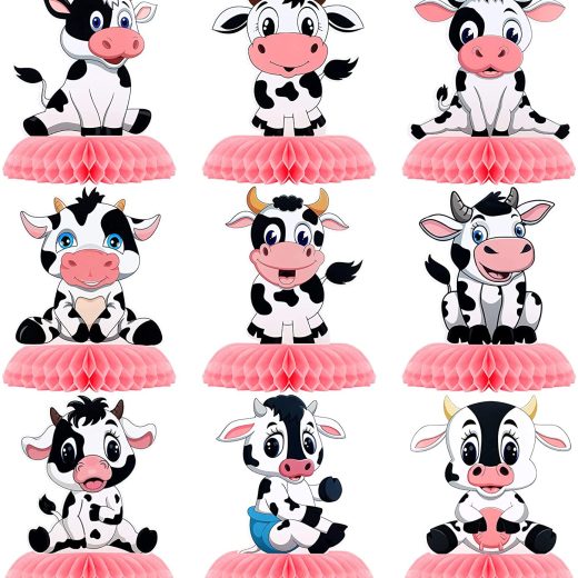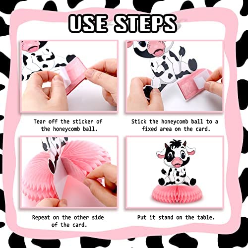 9 Pcs Cow Print Honeycomb Centerpieces Cow Theme Party Honeycomb Table Topper Pink Cow Party Decorations Farm Animal Cow Birthday Party Supplies Cow Print Party Supplies for Girl Cowboy Party Favors
