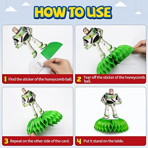 Perfect moment for your party, family, friends with the great toy story birthday party supplies! This is the happiness you deserve to have in your life! Package inclues: 9 pcs toy inspired story honeycomb centerpieces 50 pcs toy story themed stickers Our Advantage: Easy to Assemble. Premium Material, Fadeless and odorless. Vivid colors and vibrant images. Great for many occasions.