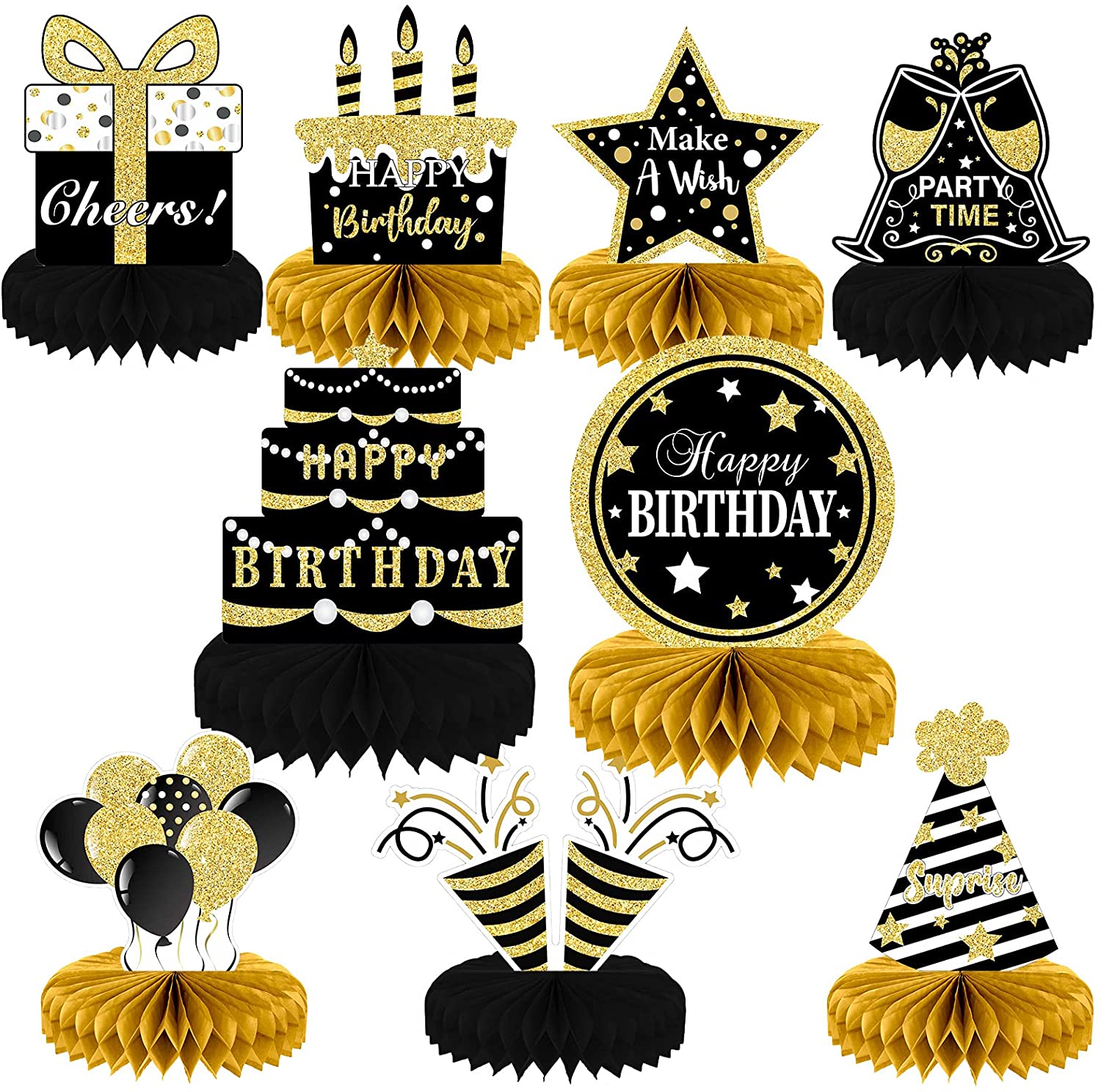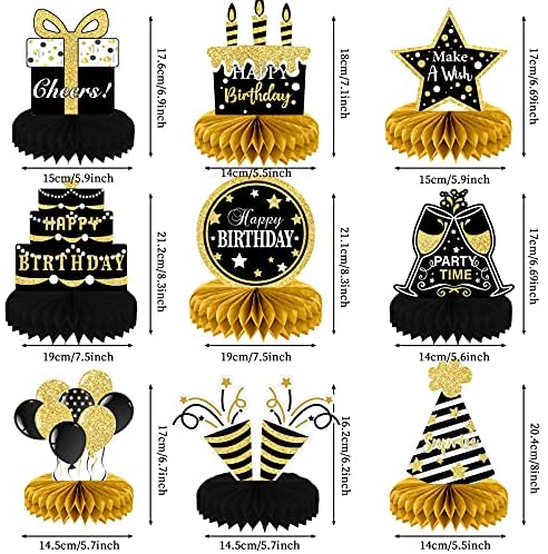 9 Pieces Black Gold Birthday Decorations Birthday Centerpieces for Tables Decorations Happy Birthday Honeycomb Table Topper Happy Birthday Decorations for Men and Woman Birthday Party Supplies