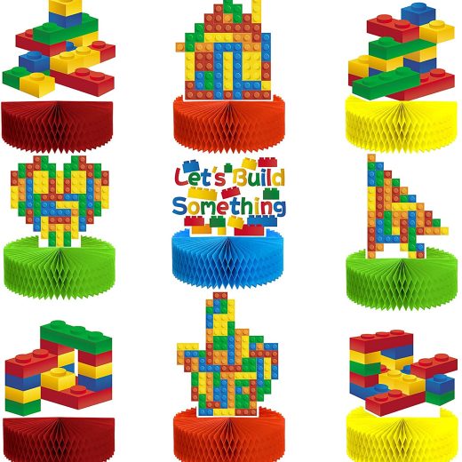 9 Pieces Building Block Birthday Party Supplies Building Block Honeycomb Centerpieces Boy Girl Birthday Party Decorations Brick Themed Table Centerpiece Classic Cake Topper Table Decor