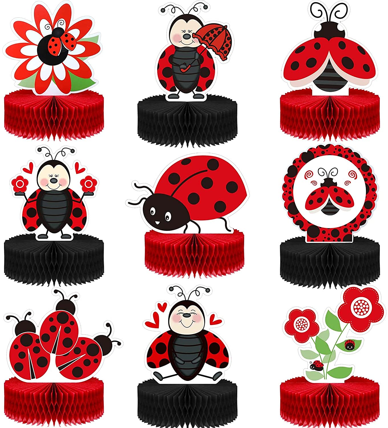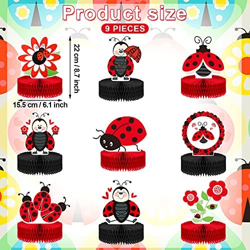 9 Pieces Ladybug Party Honeycomb Centerpieces Ladybug Themed Party Decorations Creative Ladybug Fancy Party Cake Ball Table Topper Ladybug Paper Centerpiece for Birthday Party Baby Shower Supplies