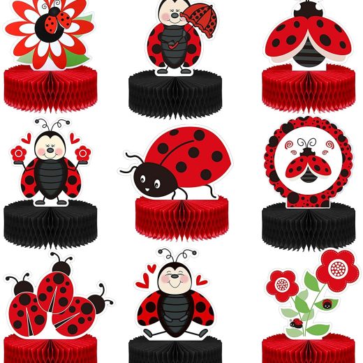 Features:Delicate designs:These cute ladybug decorations are designed in 9 different styles with bright colors, suitable to be creative table toppers for various parties and celebrations, which will add a cute and playful flavor.Easy to assemble: It is very easy to assemble, even your little ones can successfully get a complete ladybug honeycomb centerpiece in few seconds according to the picture.Specifications:Material: paperColor: as shown in picturesSize: approx. 9.84 x 7.87 inchesPackage includes:9 x Ladybug theme honeycomb centerpiecesNotes:Please allow slight color difference due to different screen displays.Please allow slight errors on size due to manual measurement.