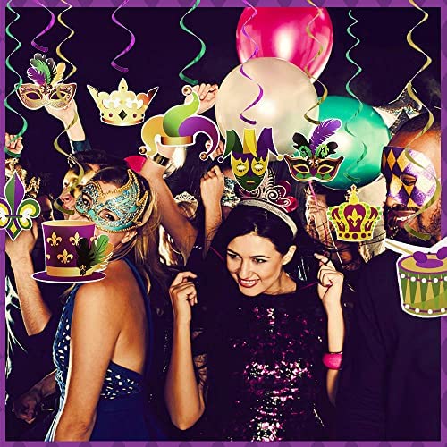 9 Pieces Mardi Gras Party Hanging Swirl Decoration, Gold Green Purple Garland Crown Mask Sign Foil Hanging Swirls Ceiling Decor for Mardi Gras Carnival Masquerade Party New Orleans Theme Party Supply