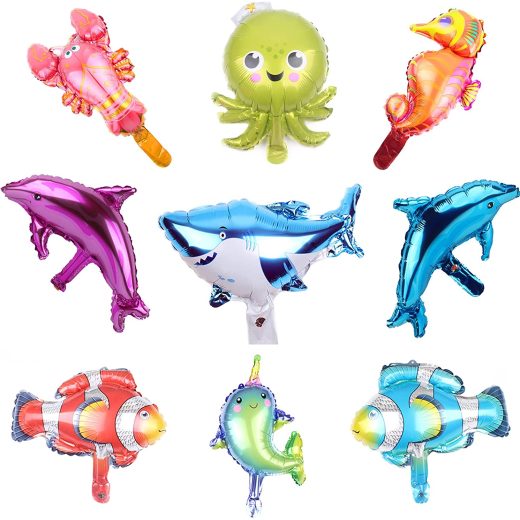 9 Pieces Mini Ocean Animals Foil Balloon Shark Seahorse Octopus Dolphin Tropical Fish Whale Lobster Sea Creatures Mylar Balloons for Ocean Theme Birthday Baby Shower Party Decoration Supplies