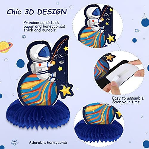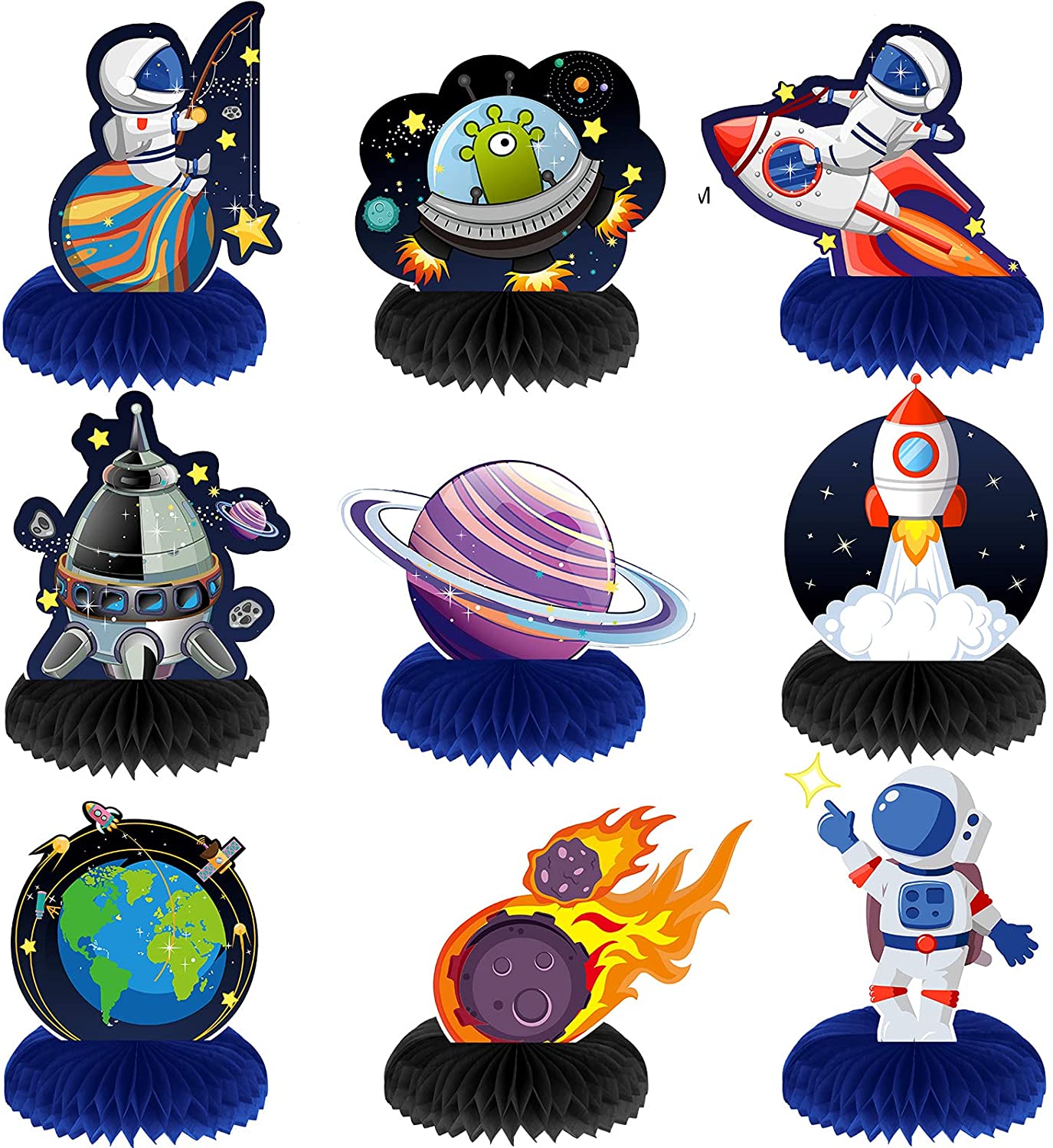 9 Pieces Outer Space Themed Honeycomb Centerpiece Outer Space Party Decorations Birthday Party Table Toppers Double Sided Table Decorations Planet Rocket Astronaut UFO Solar System Party Supplies