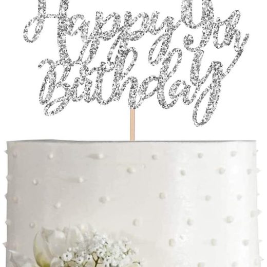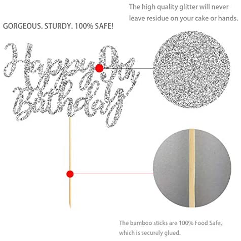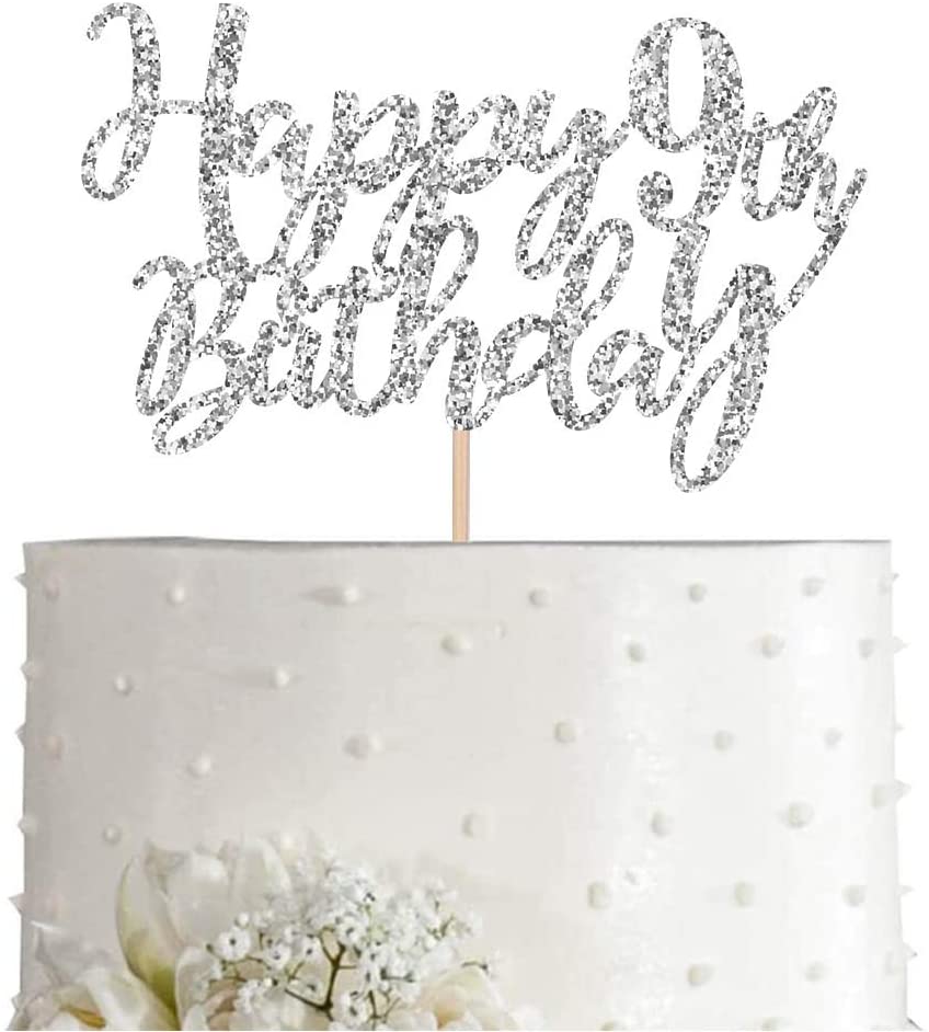9 Silver Glitter Happy 9th Birthday Cake Topper, Birthday Party Decorations, Supplies, cake topper