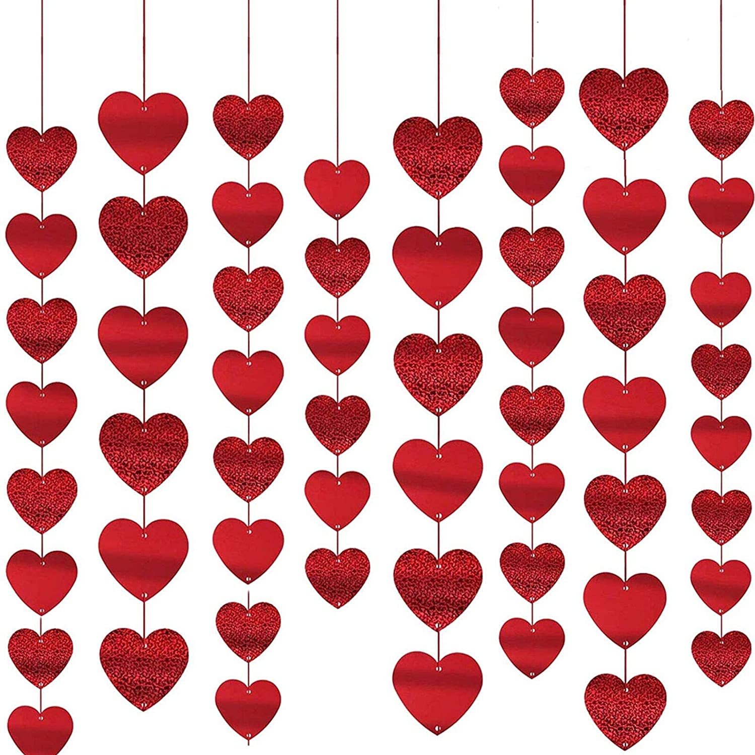 15 Packs: The package includes 15 strings, each hanging decoration contains 6 heart, total 90 hearts. Each is 6.6ft and the heart measures 3 .1×2.8…