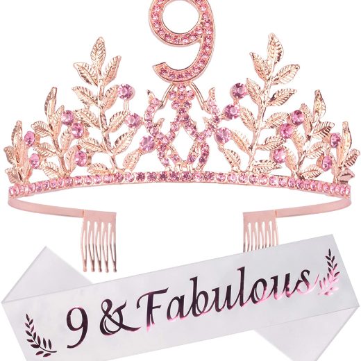9th Birthday Gifts for Girls, 9th Birthday Tiara and Sash, 9 Fabulous Sash and Crystal Tiara, 9th Birthday Decorations for Girls, 9th Birthday Party Supplies, Happy 9th Birthday